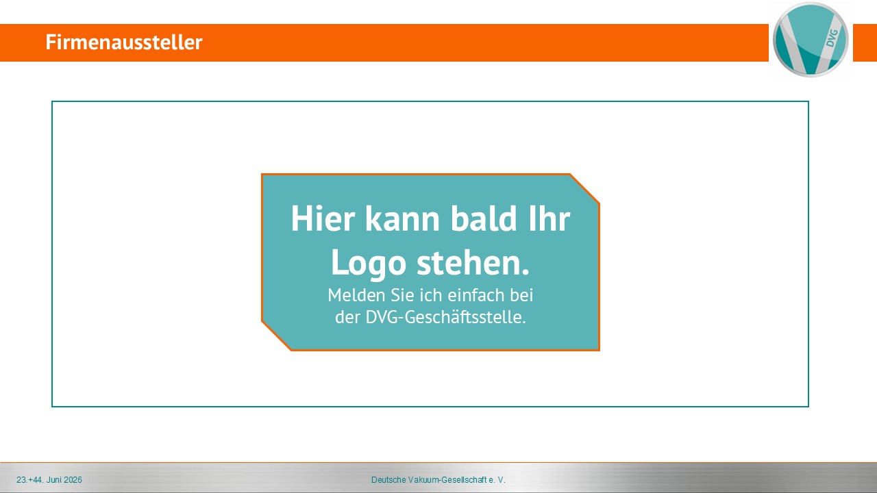 DVG-Firmenmitglieder können dort ihre Produkte, Dienstleistungen und Technologien im Umfeld der Vakuum- und Oberflächentechnik präsentieren.