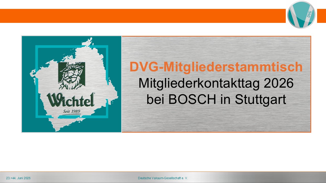 Auch im Jahr 2026 lädt die Deutsche Vakuum-Gesellschaft ihre Mitglieder sowie alle an vakuumgestützten Technologien interessierten Fachleute herzlich zum nächsten DVG-Mitglieder-Kontakttag ein.