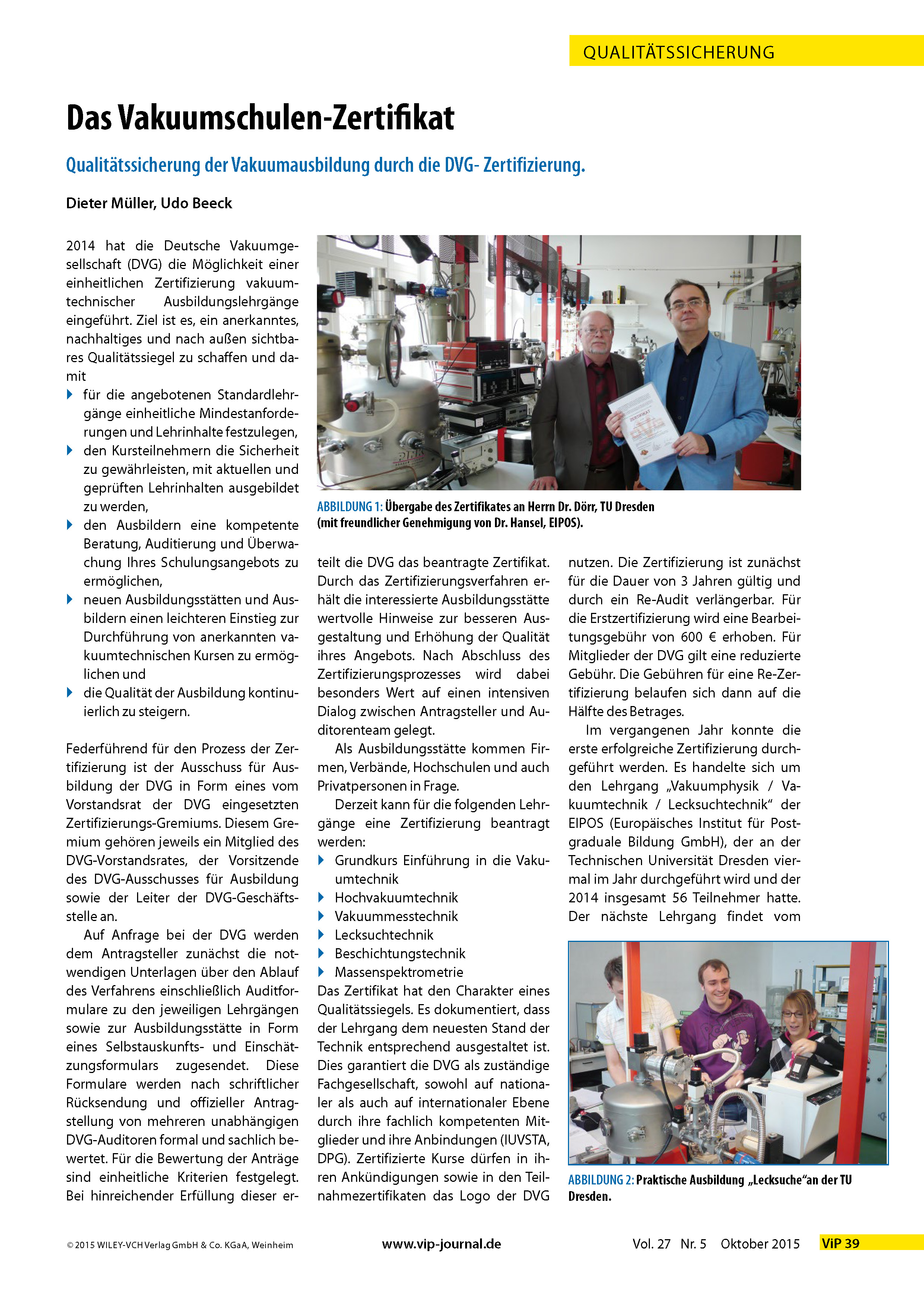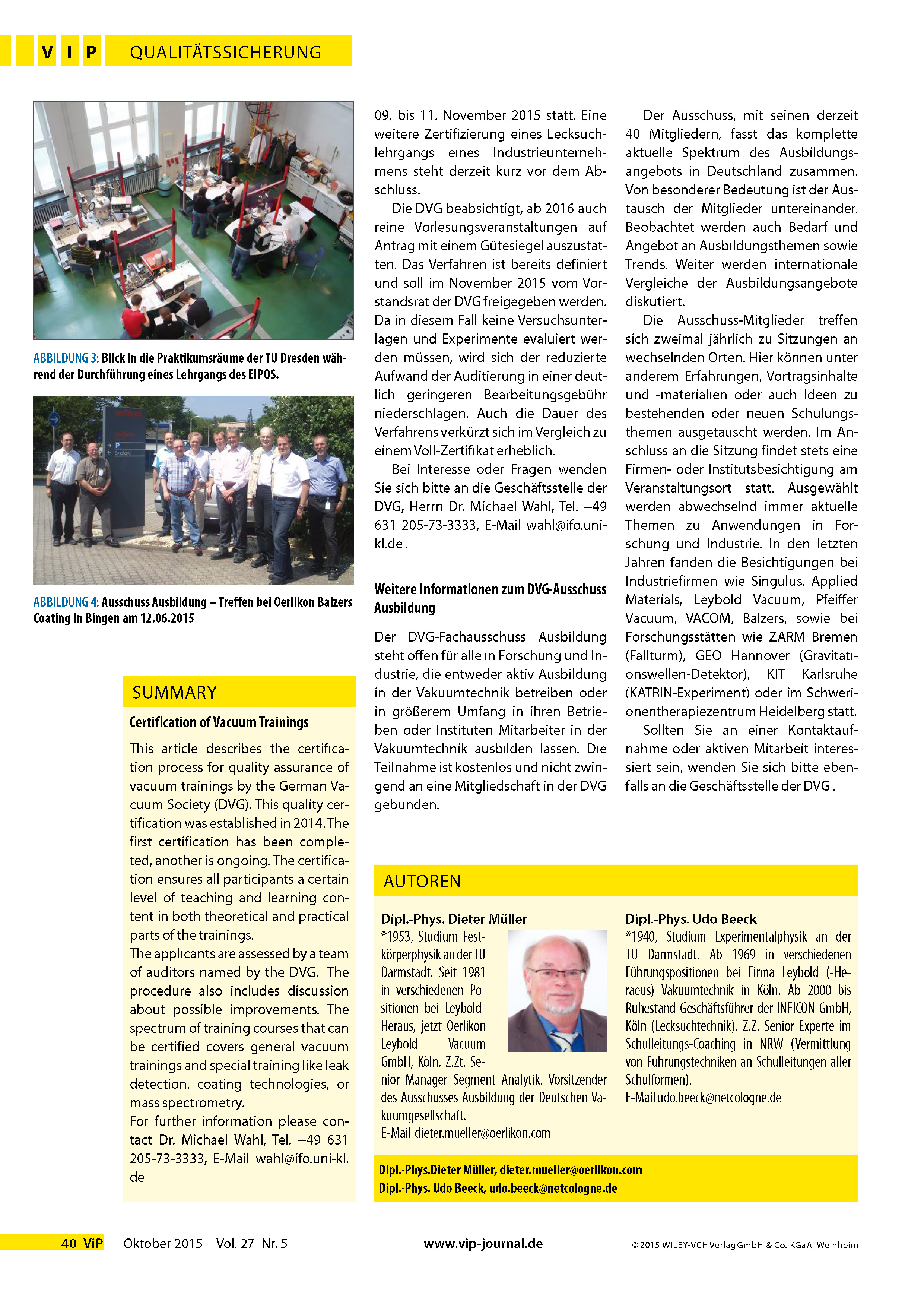 - neuen Ausbildungsstätten und Ausbildern einen leichteren Einstieg zur Durchführung von anerkannten vakuumtechnischen Kursen zu ermöglichen und
