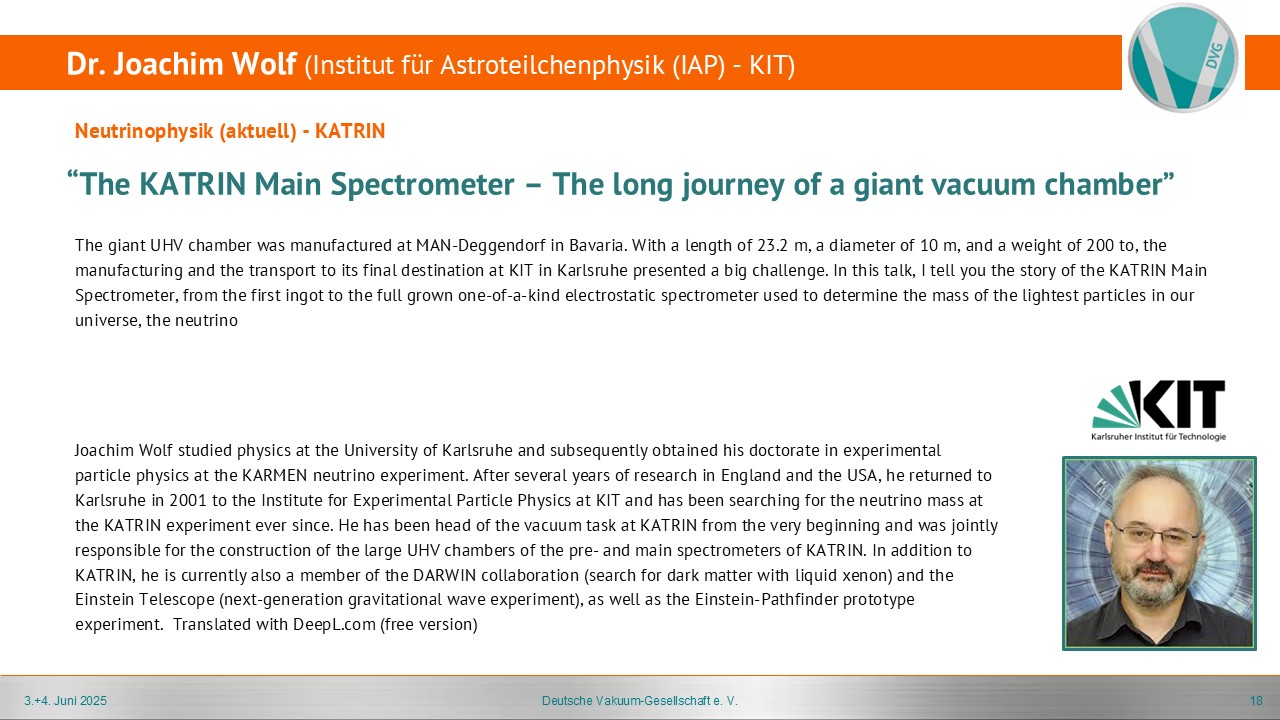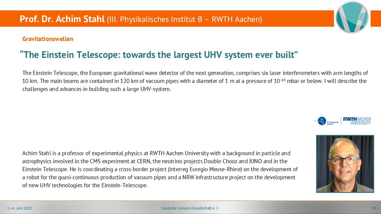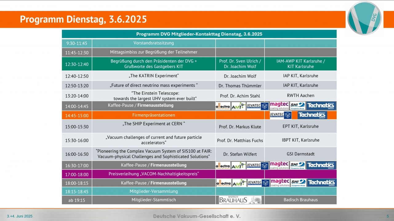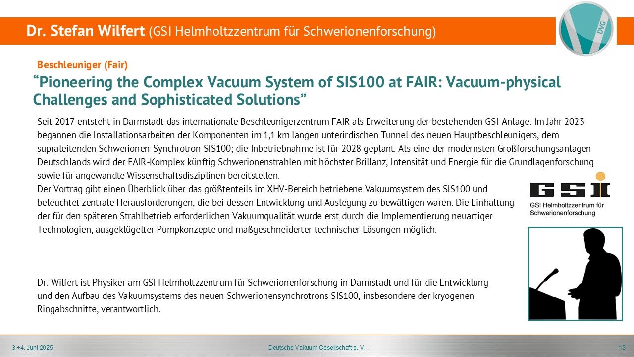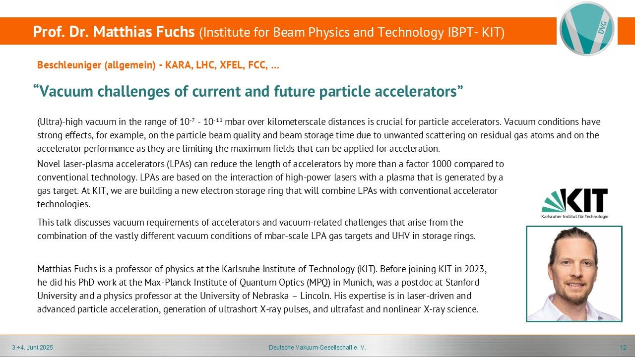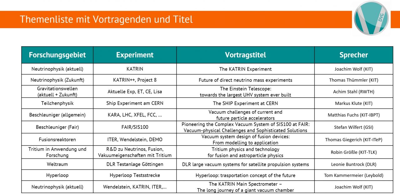 Die Fachvorträge stehen diesmal unter dem Leitthema „Vakuum an Großforschungsanlagen“