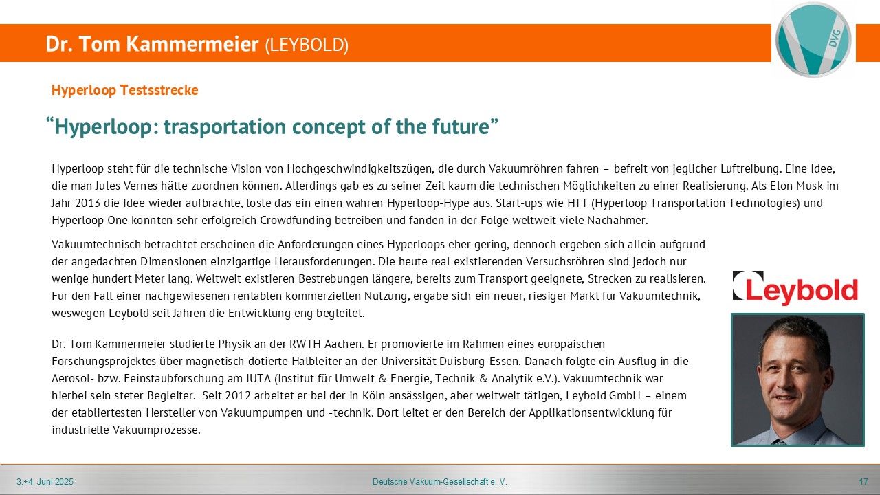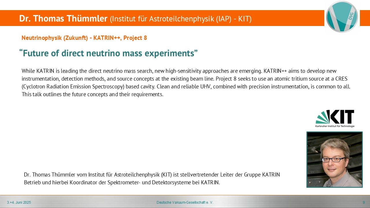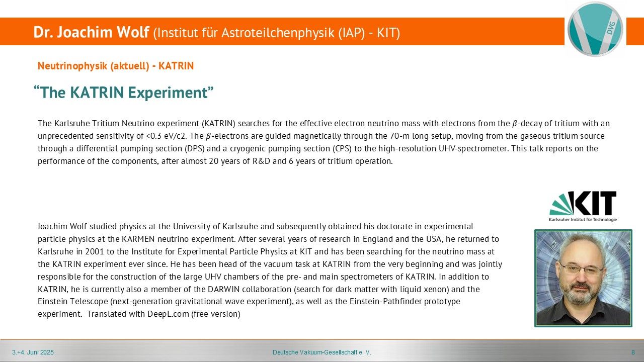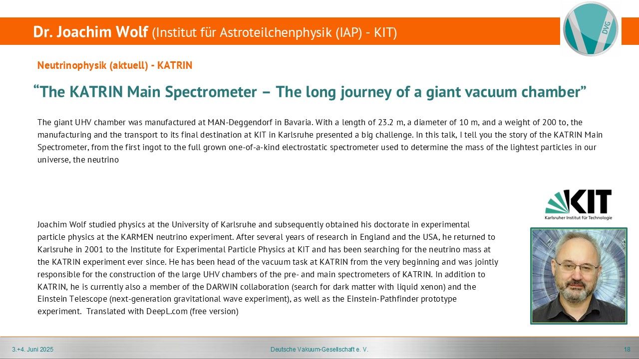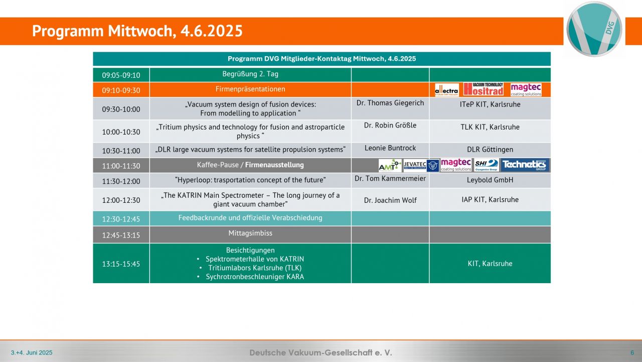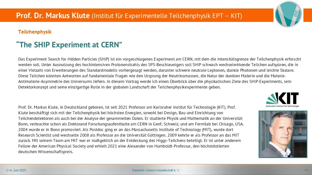 Die Fachvorträge stehen diesmal unter dem Leitthema „Vakuum an Großforschungsanlagen“