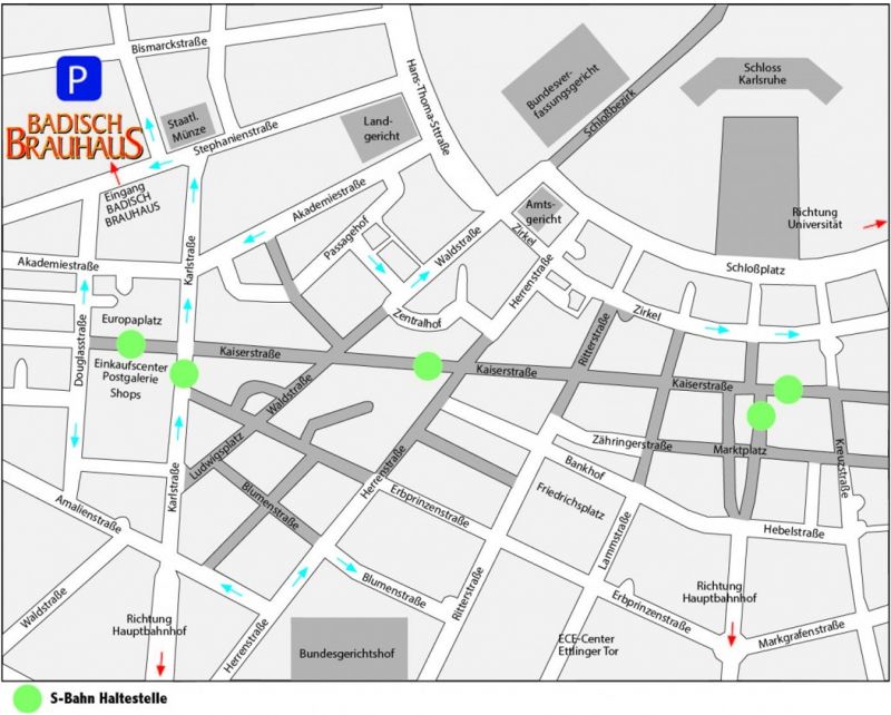Das Brauhaus ist im Zentrum von Karlsruhe gelegen.