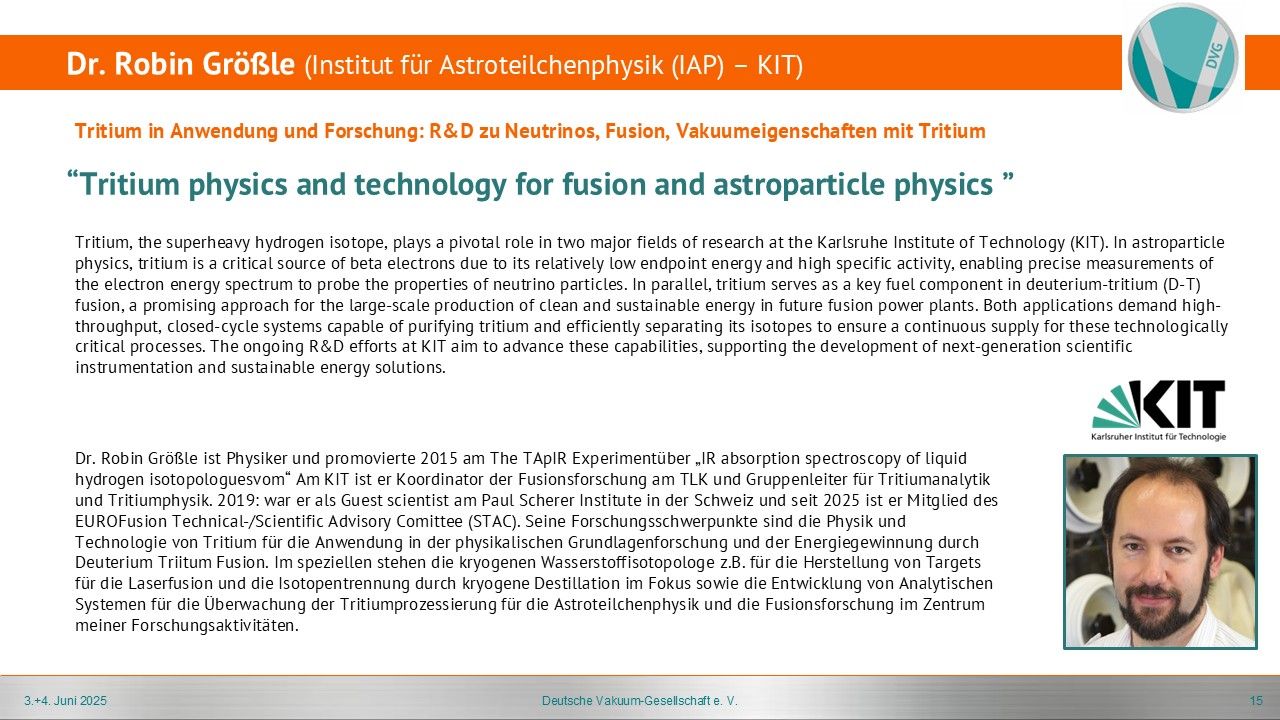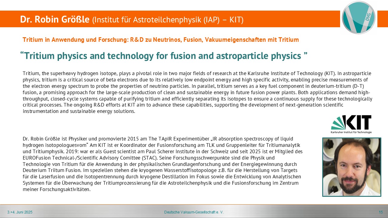 - R&D mit Tritium (Neutrinos, Fusion, Vakuumeig.)