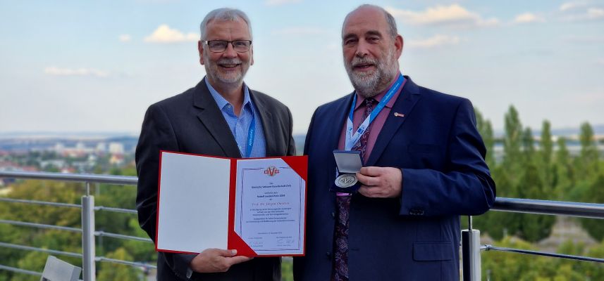 Jürgen Christen erhielt die Auszeichnung „in Würdigung seiner herausragenden Leistungen auf den von der DVG betreuten Wissenschafts- und Technologiebereichen insbesondere für seine Pionierarbeiten zur Entwicklung und Etablierung der Kathodolumineszenz“. Der Preis wurde ihm Anfang September im Rahmen der Vacuum Session auf der 19th International Conference on Plasma Surface Engineering (PSE) in Erfurt überreicht.